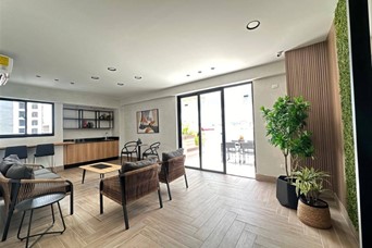 Apartamento ubicado en zona residencial tranquila con multiples y fáciles accesos. Concepto familiar, acogedor, con un diseño contemporáneo. Característica: Lobby con doble altura Habitacion principal con walk-in closet Habitaciones secundarias 1 con closet corredizo Sala - Comedor Balcón Cocina ventilada Baño de visita Habitación de servicio con baño Area de lavado Salida de emergencia Dos (2) parqueos Locker privado opcional Amenidades: Terraza destechada con jacuzzi Gimnaso equipado con baño Salón multiuso con baño Cuarto auxiliar para conserjería Sistema contraincendios Ascensor de última generación Generador eléctrico full Portones automatizados Sistema de intercomunicador Circuito Cerrado de cámara de seguridad Pre-instalaciones de A/A
