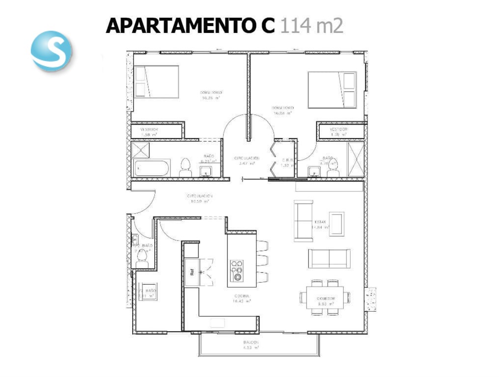 - 3 habitaciones