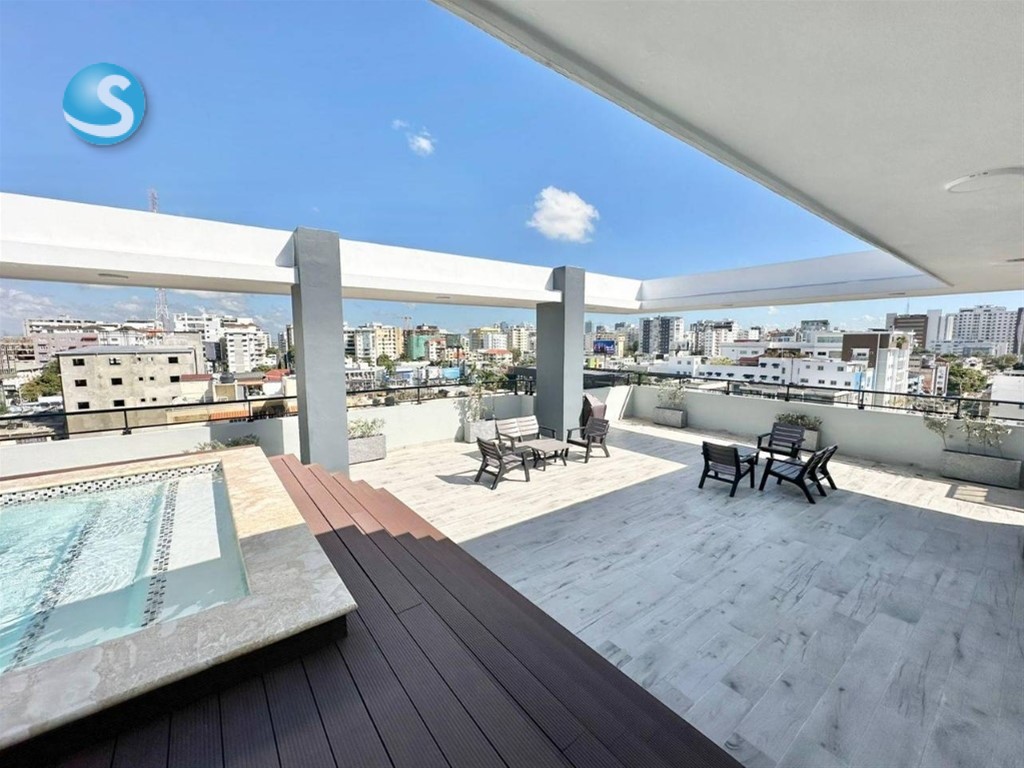 ¡Moderno Apartamento Nuevo a Estrenar en Bella Vista! 58 m² netos | Piso 3 Características del apartamento: 1 habitación con wc 1.5 baños modernos Sala – Comedor Cocina con estufa empotrada, horno y extractor. Área de lavado 1 parqueo techado Características de la torre: Lobby climatizado Gimnasio equipado Piscina Terraza común para disfrutar al aire libre Salón multiuso para actividades y reuniones Seguridad 24 horas Precio de alquiler: US$850 mantenimiento incluido INFORMACIÓN Maria Canchica 809-991-5805 849-273-5805