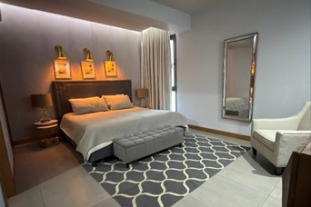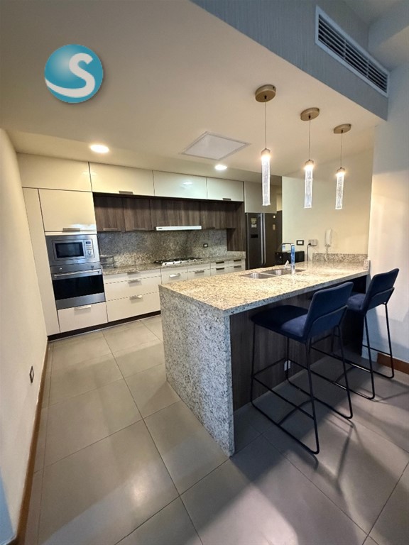 Apartamento en alquiler amueblado en Bella Vista US$2,500 4to. nivel 180 metros 3 Habitaciones 2.5 Baños Sala Comedor Cocina Área de lavado Habitación de servicio Balcón con vista al mar Estudio Recibidor 2 parqueos Emil