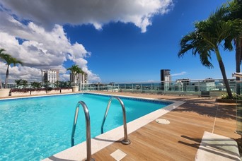 Bella Vista a pasos de la churchill US$1,000 1 Hab. C/ WorkCloset 2 baños completos Sala Comedor Cocina Área de Lavado Balcón integrado 1 parqueo Área neta 90 mt2 Línea blanca incluida Estufa 30 pulg. Con horno Extractor de grasa 1 aire 14 btu 1 aire 18 btu 1 nevera 1 lavadora secadora gas Calentador de agua Amenidades torre Seguridad y concergeria 24h Lobby climatizado 2 Ascensores Gym moderno completo Área de bbq Piscina vista al mar Salón de evento rooftop Piso 10 mant. Incluido