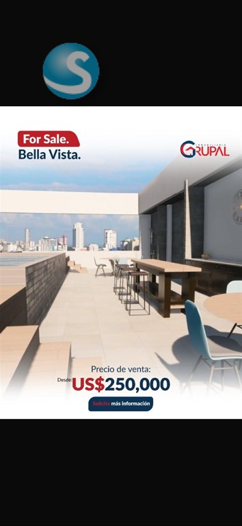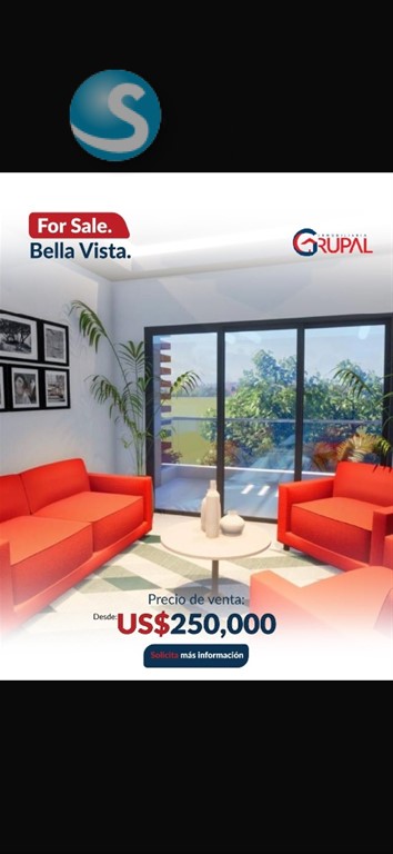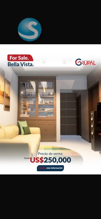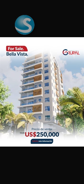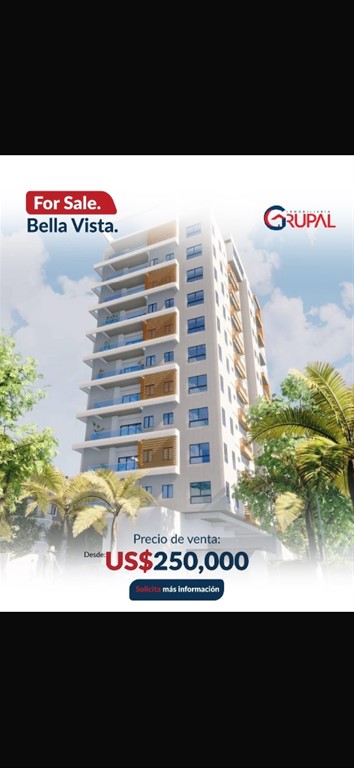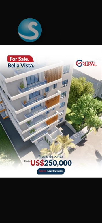 Hermoso Proyecto ubicado en Bella Vista Sur?? ?????????????????????????????? ???? ?????? ???????????????????????? ??Desde 104 mts ??Apartamentos de 2 y 3 habitaciones ??Sala / comedor ??Family room o sala estar ??Balcón ??Medio baño para visitas ??Cocina tradicional y cocina caliente ??Cuarto auxiliar con baño ??Área de lavado ??2 parqueo techado ?????????????? ?????????? US$250,000.???? ?????????????????????????????? ?? ???????????????????? ???? ???? ?????????? ??Portón eléctrico ??2 ascensores ??Luz 24 hrs ??Cámaras de seguridad ??Planta full ??Área de juegos ??Gimnasio ??Piscina ??Lobby ??Terraza común ??Gas