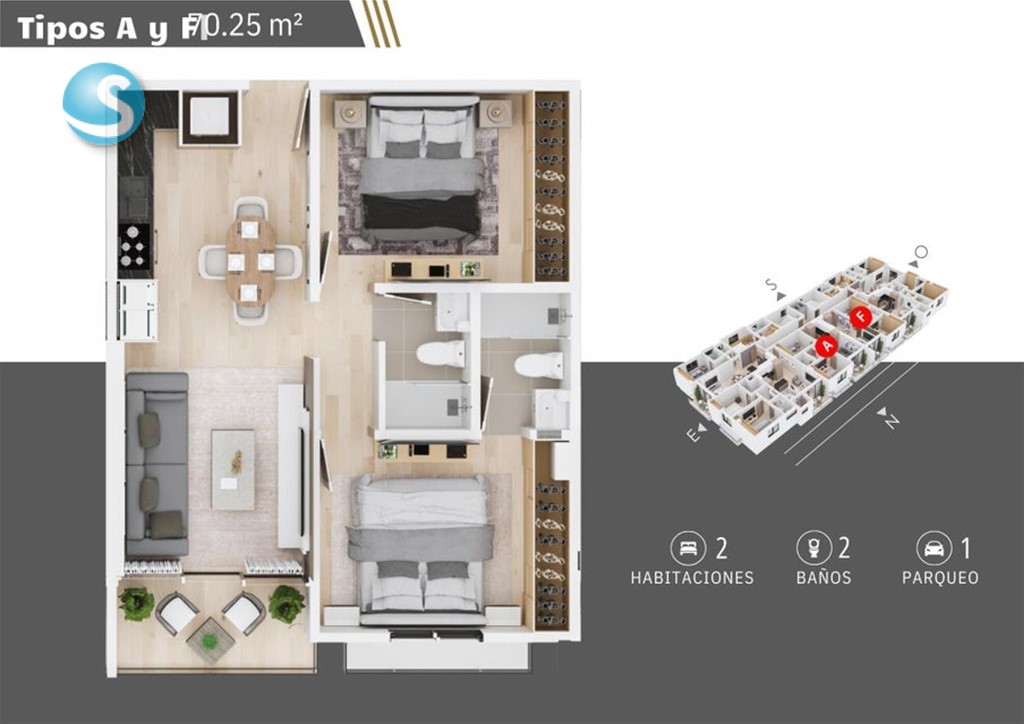 - 2 parqueos