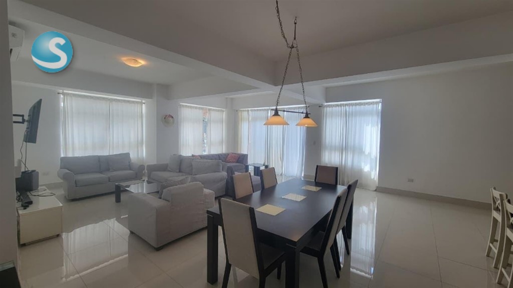 Alquiler de Apartamento 3 habitaciones amueblado en Bella Vista. ¡Ideal para ti y tu familia! Ubicado en piso 3. Este amplio e iluminado apartamento tiene 3 amplias habitaciones (cada una con su baño y w-closet). Medio baño de visita, cocina abierta y amplia con su desayunador, balcón tipo terraza, área de lavado y área de servicio con entrada independiente. 2 parqueos paralelos. Amenidades de la torre: Lobby climatizado, Piscina, terraza BBQ, Gym, Área de niños, salón de eventos climatizado. Características de la torre: Planta full, 2 ascensores, cámaras de seguridad, Seguridad24/7, Gas común, portón eléctrico. ¡Ubicación privilegiada! Cerca de colegios, supermercados, centros comerciales, farmacias y de las principales avenidas del Distrito Nacional. Agenda tu cita y conoce más detalles. MLS 26-1260