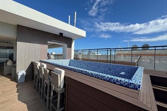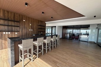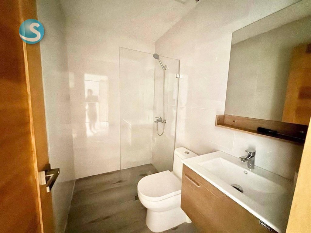Descripción Moderno apartamento en alquiler en Bella Vista 184.33 mt2 Piso 8 3 habitaciones 3.5 baños Sala Comedor Cocina fría Balcón Habitación de servicio + baño 2 parqueos Amenidades: Garita de seguridad Portón eléctrico Ascensor Planta eléctrica Luz 24hrs Cámaras de seguridad Precio: US$2,500