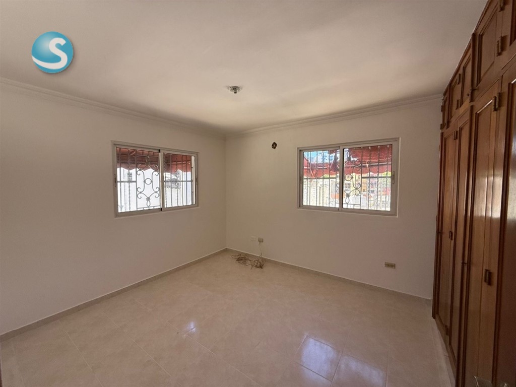Bella Vista, a una esquina de la Av. Rómulo Betancourt 2do nivel sin ascensor 150mts 3 habitaciones (principal con W/C y baño) 2.5 baños Sala Comedor Cocina Cuarto de servicio con su baño Área de lavado 2 parqueos independientes destechados. Portón eléctrico Planta full Gas independiente Precio de alquiler: RD$40,000