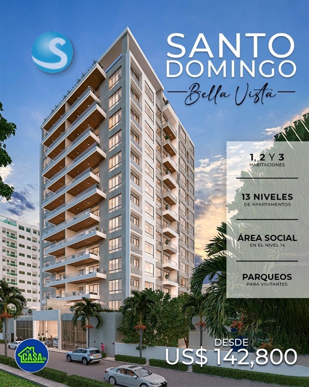 A pasos del Downtown y Av Núñez de Cáceres vivir bien ubicado ya no es un lujo… es una decisión inteligente. Descubre apartamentos modernos de 1, 2 y 3 habitaciones en una de las zonas más demandadas de la ciudad, ideales para vivir o invertir con gran potencial de valorización. * Piscina infinity en el nivel 14 * Área social tipo bar & lounge * Gimnasio climatizado y equipado * Área de BBQ * Salón para actividades * Área de juegos para niños * Área de juegos para jóvenes y adultos * Área de caminata * Parqueos para visitantes * Sistema de cámaras de vigilancia * Dos ascensores de última generación * Amplio lobby en mármol Ubicación estratégica Diseño moderno y funcional Alta demanda en la zona