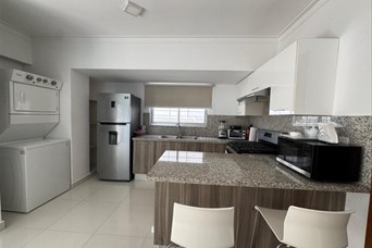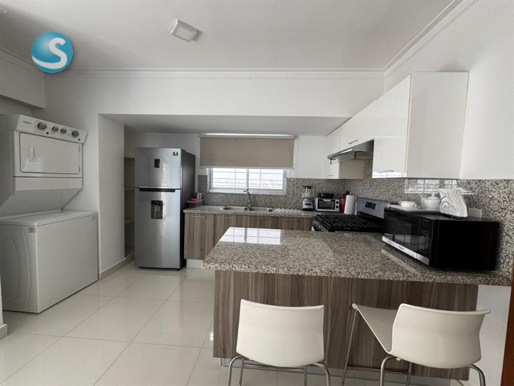 Alquiler Amueblado | Bella Vista, Santo Domingo D.N. US$1,200 (Mantenimiento incluido) 101.68 m² 2do Piso Contrato largo plazo 1 Habitación Cama Queen Caja fuerte (Safe) TV Sala con sofá cama + sillón extensible TV en sala 1.5 Baños Balcón Sala Comedor Cocina Lavadora – Secadora 1 Parqueo profundo (caben 2 vehículos pequeños) Amenidades: Gimnasio Picuzzi con vista al mar Seguridad 24/7 Verja electrificada Rejas en las ventanas Apartamento muy tranquilo, ideal para ejecutivo o pareja. Mascotas deben ser aprobadas previamente.