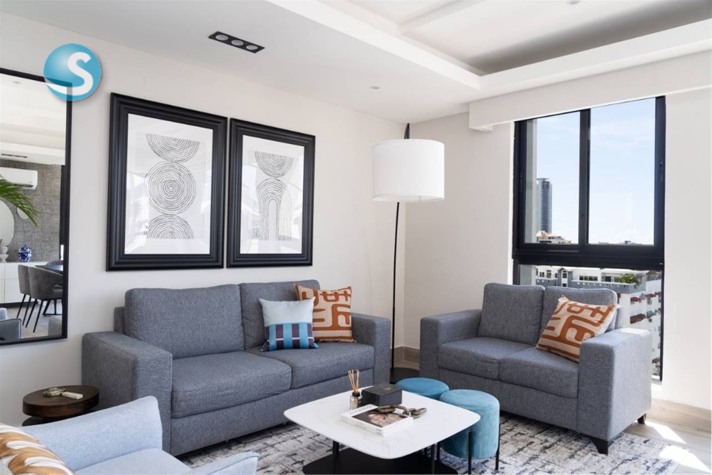 Hermoso apartamento en venta amueblado en Bella Vista 150 mts Piso 8 2 habitación con walking closet 2.5 baños Balcón Sala Comedor Estudio Área de lavado Desayunador 2 Parqueo Seguridad 24/7 Cámaras de seguridad Planta full Ascensor Áreas sociales Gym Piscina Gas común Precio de venta US280,000