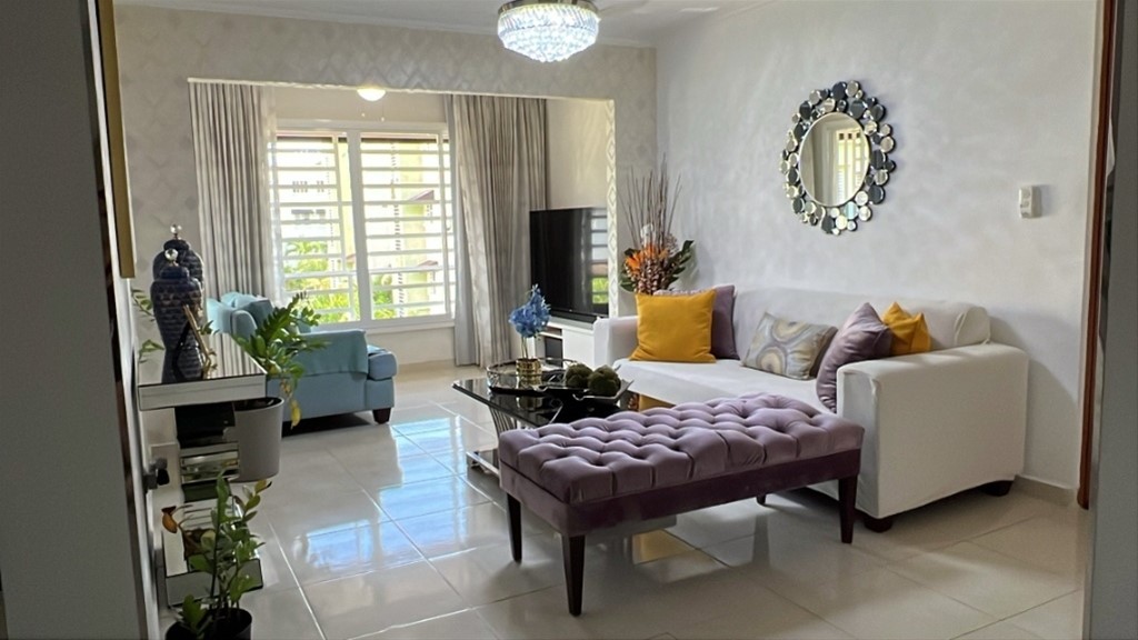 Sala Balcón amplio, Comedor, Cocina, Desayunador, Cuarto de Estudio con Opción para Habitación con Aire Acond., 2 Habitaciones, Principal con Walk in Closet, Baño y Aire Acond, 2 Baños , 2 Parqueos, Area de Lavado, Calentador a Gas, Inversor, Escalera de Emergencia, Entre Otras Comodidades