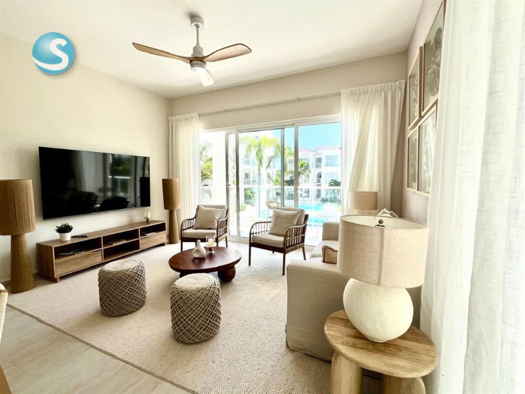 Punta Cana - Cana Bay 162.85. m² 2do nivel 2 Habitaciones con baño c/u closet en habitación principal. 2da habitación con vista a la piscina 2.5 baños Cocina moderna con desayunador Terraza con vista a la piscina y al campo de golf Aire central 1 parqueo Acceso a amenidades exclusivas de Cana Bay: Acceso al Beach Club privado con restaurante y vistas al mar Piscina tipo resort Campo de golf y Club de Golf Gimnasio, spa y seguridad 24/7 Casino Exclusivos restaurantes