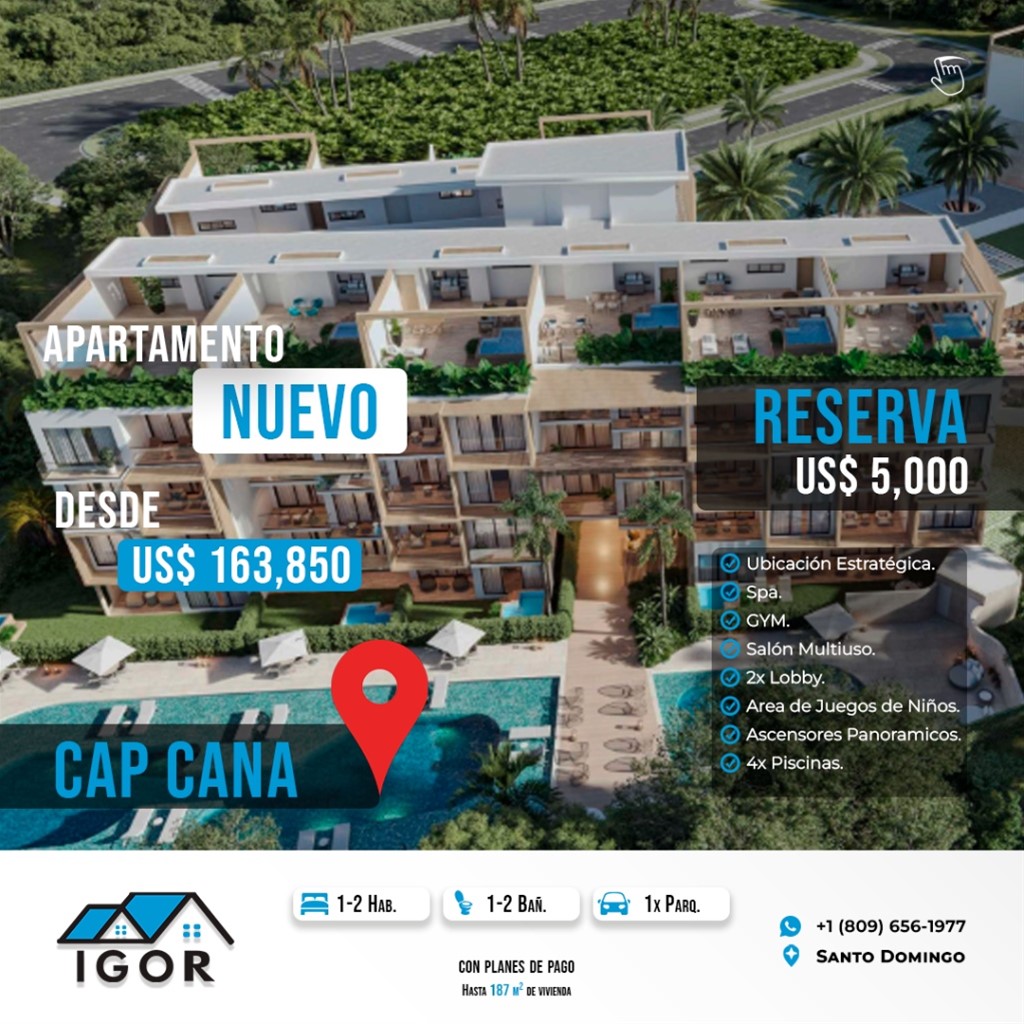 ApartamentoS en Cap Cana, diseñado para quienes buscan vivir rodeados de belleza natural sin renunciar a la sofisticación. Con más del 75% de su perímetro inmerso en áreas verdes, este proyecto residencial ofrece una experiencia íntima y armoniosa, donde cada día comienza con la fresca brisa y termina bajo cielos estrellados. Ubicado en una de las zonas de mayor crecimiento dentro de Cap Cana, se encuentra a pasos de las principales amenidades de este destino exclusivo: millas de playas vírgenes, campos de golf de clase mundial, marina, centro ecuestre y una vibrante oferta gastronómica. AMENIDADES EXTRAORDINARIAS -4 PISCINAS -GIMNASIO -SPA -2 LOBBIES -4 ASCENSORES PANORÁMICOS -SALÓN MULTIUSO -ÁREA JUEGOS DE NIÑOS -PUTTING GREEN -UPGRADES -AIRES ACONDICIONADOS -ROOFTOPS -HABITACIONES DE SERVICIO -JACUZZIS -ESTACIONAMIENTOS ADICIONALES DESDE US$ 163,850 RESERVA US$ 5,000 CON PLAN DE PAGO.