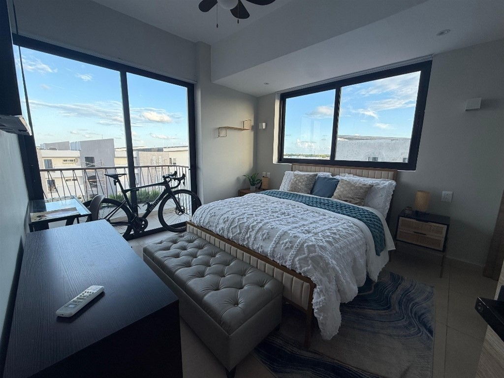Descripción Ciudad Las Canas – Cap Cana - Blue Palm Proyecto boutique exclusivo de solo 3 apartamentos, diseñado para quienes buscan privacidad, comodidad y ubicación privilegiada en una de las zonas más exclusivas del Caribe. Ubicación Estratégica • En el corazón de Cap Cana, Punta Cana. • Acceso rápido y cómodo, tanto en vehículo como a pie. • A pocos minutos de: • Marina Cap Cana • Playas de arena blanca • Heritage School y UNIBE • El Dorado Water Park • Restaurantes, comercios y zonas recreativas. Distribución Apartamento A – Primer Nivel • 2 habitaciones • 2 baños • Sala y comedor • Cocina • Terraza • Área de servicio Apartamento B – Segundo Nivel + Mezzanine • 2 habitaciones • 2 baños • Sala • Cocina y comedor • Terraza Apartamento C – Segundo Nivel + Mezzanine (Tipo Loft) • 1 habitación • 2 baños • Sala • Cocina y comedor • Terraza Precio de Venta • US$ 570,000 Renta Larga 1. Apartamento A – 2 habitaciones / 2 baños ? US$ 1,750 mensual + US$ 250 mantenimiento. 2. Apartamento B – 2 habitaciones / 2 baños ? US$ 1,600 mensual + US$ 250 mantenimiento. 3. Apartamento C (Loft) – 1 habitación / 2 baños ? US$ 1,300 mensual +US$ 150 mantenimiento. Ventajas • Proyecto exclusivo con pocas unidades. • Acabados modernos y funcionales. • Zona segura y de alta plusvalía. • Cercanía a marina, playas y servicios esenciales.