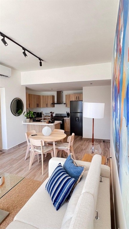Descripción Elegante apartamento amueblado en Ciudad Las Canas Con 70 m² cuidadosamente diseñados, el apartamento ofrece espacios cómodos y funcionales, ideales para vivir o disfrutar largas estancias. Distribución: • Amplia habitación con moderno clóset • 1 baño • Sala y comedor integrados • Cocina de concepto abierto totalmente equipada • Amplio balcón con acceso desde la sala y la habitación • Clóset de lavandería • 1 parqueo privado + parqueos para visitantes • Sistema de filtro de agua Coway Amenidades del residencial: • Piscina • Gimnasio • Salón de eventos • Ascensor Ubicado a pocos minutos de supermercados, farmacias, restaurantes y acceso a la playa, con la ventaja adicional de disfrutar las facilidades y el estilo de vida exclusivo de Cap Cana. Precio de alquiler: US$1,500.00.