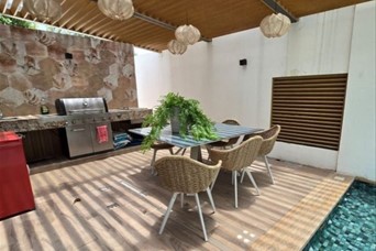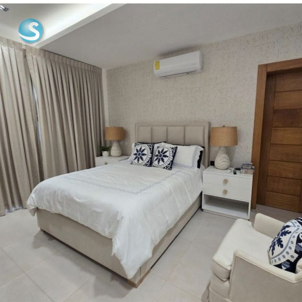Amplio y lujoso apartamento amueblado en renta ubicado en Cap Cana 300mts 2 niveles Tres (3) habitaciones Tres (3) baños Cocina concepto abierto Sala Comedor Terraza con Jacuzzi BBQ Parqueo techado Área Social : Gimnasio Piscina Salón de eventos Área de juego para niños Precio de alquiler: US $4,000.00