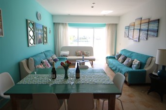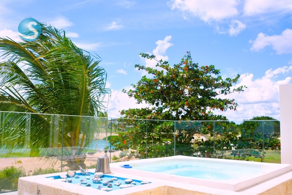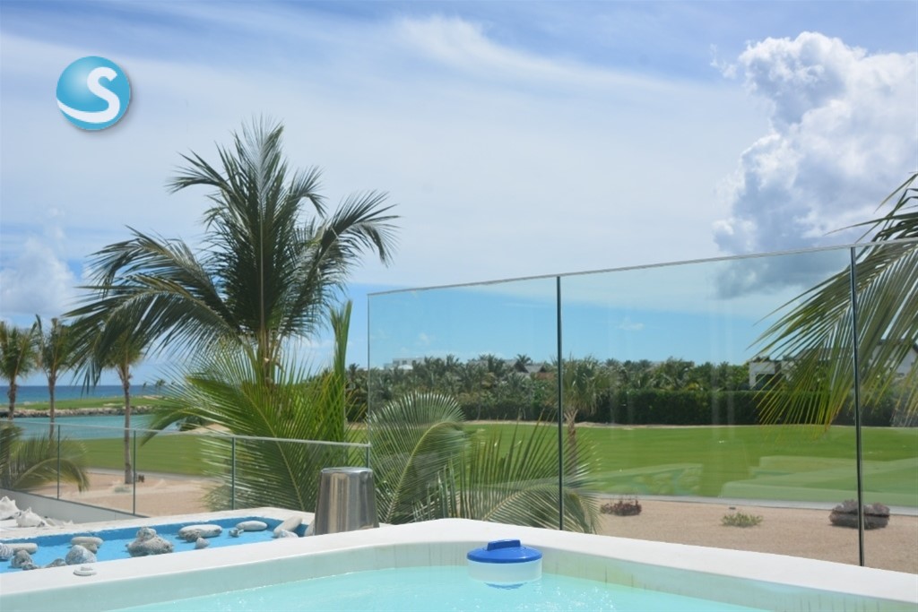 Apartamento en corazon de Cap Cana al frente del Mar, con vistas al campo de golf y mar. Con su playa privada y picina olimpica. 2 dormitorios, 2.5 banos, balcon grande con jacuzzi.