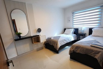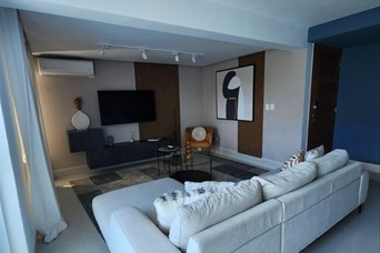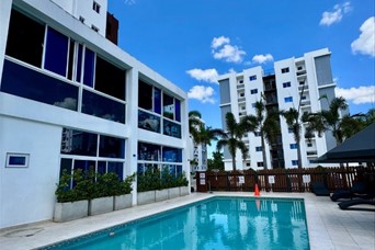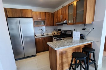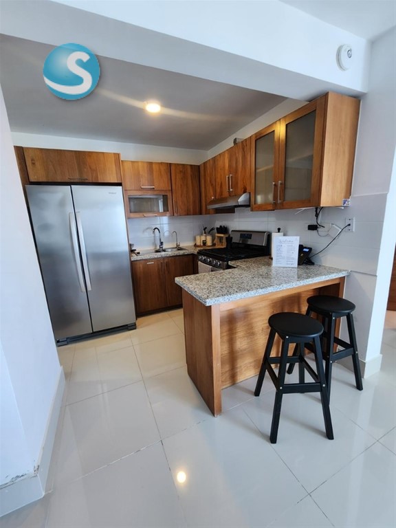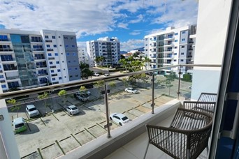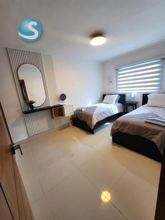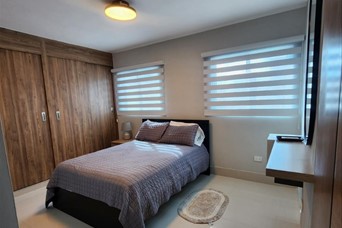 Se alquila apartamento AMUEBLADO en Cerro Alto, Santiago. 5to nivel 2 parqueos 3 habitaciones (principal con walking clóset) 2 baños Sala Comedor Cocina Gas común Calentador de agua Área de lavado Amplio balcón Elevador Piscina Gimnasio Árra infantil Gacebo para actividades Precio de alquiler : US $1,300