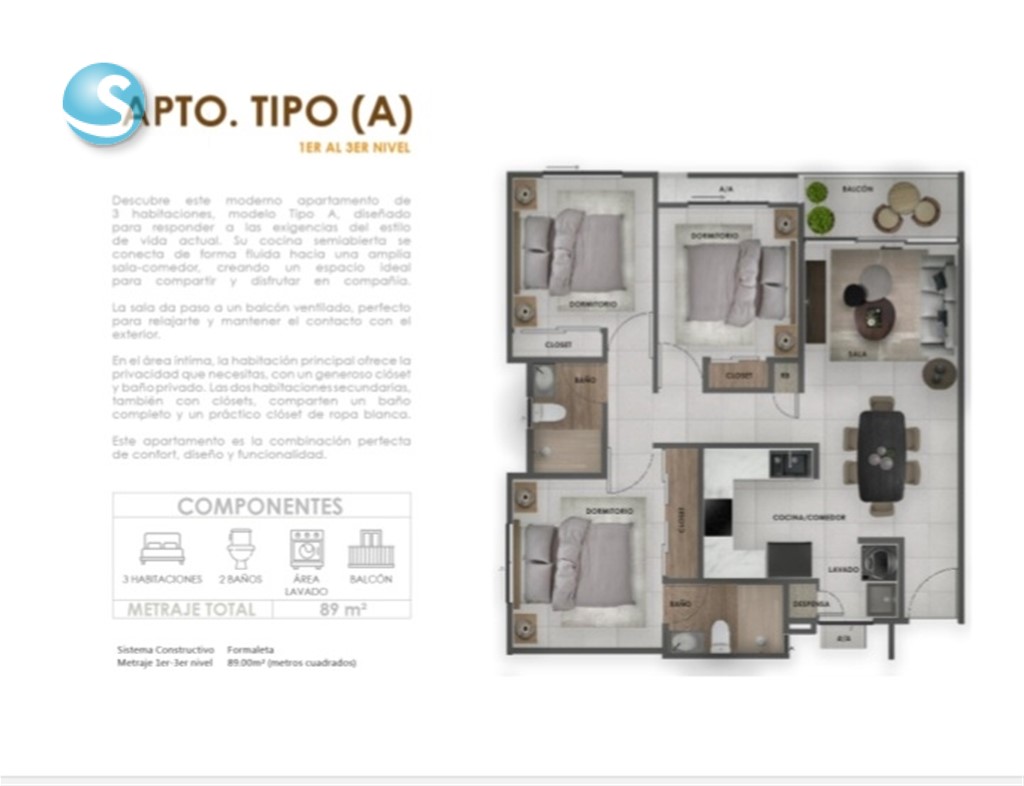 Residencial Altos del Este, avenida ecologica, cerca de ciudad Juan Bosch Aptos de 70, 79 y 89 mts Entrega a partir de octubre 2027 Proyecto con garita de seguridad Areas verdes, parques, juego para niños y piscina Edificios con intercom Gimnasio Cerámica importada Cámaras de seguridad en acceso Cancha de basketball Todos los aptos de 3 dormitorios 2 baños y balcón Tipo A, 89 mts, 1er a 3er piso USD$81,000 Tipo A, 146 mts 4to piso, USD$115,000.00 Tipo C, 70 mts, 1er a 3er piso, USD$65,000 Tipo C, Tipo ph, 4to piso, USD$98,000.00 Tipo E, 79 mts, 1er a 3er piso, USD$73,000 Tipo E, tipo PH, 4to piso, USD$104,000