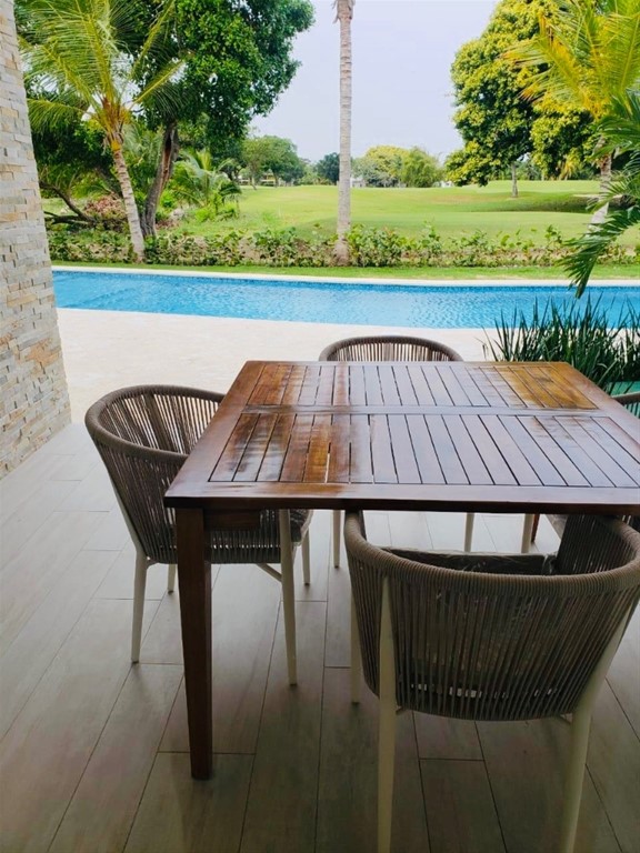 Se vente apartamento en primer piso incluye amueblamiento de lujo, ubicado en cocotal golf & country club . Esta propiedad de alta calidad está frente al lago y al campo de golf con una magnífica piscina que cubre todo el condominio. Este apartamento está ubicado s a pie del Palma Real Shopping Village, acceso al club de playa de los hoteles Meliá. Excelente para vivir o invertir DETALLES * Planta baja * 2 habitaciones * 2 baños * 1 plaza de aparcamiento * Gran terraza al aire libre con vista a su propio patio privado * Amplia sala de estar y comedor