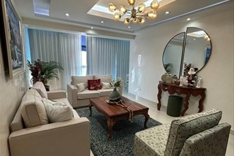 Hermoso apartamento totalmente remodelado en Corales del Sur, Distribución y características: 3 habitaciones Habitación principal con walk-in closet y baño privado Baño secundario Sala y comedor Cocina remodelada en cedro Balcón integrado Clóset de ropa blanca Terminaciones en sheetrock Pisos en porcelanato Apartamento completamente remodelado Área social y plus: Terraza con medio baño Terraza destechada con medio baño Pre–instalación de jacuzzi 2 parqueos lineales Agua permanente Precio: US$ 225,000 Informacion Aracelis Alvarado 809-763-2932