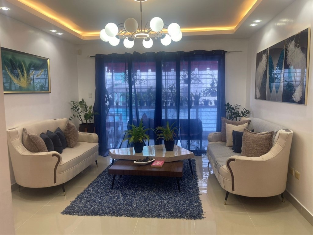Se alquila apartamento amueblado en Don Honorio – 4to piso Distribución: * 2 habitaciones (principal con walk-in clóset y baño privado) * 1 baño común * Sala - Comedor * Cocina * Área de lavado * Cuarto de servicio * Balcón * 2 parqueos paralelos Amenidades del residencial: Piscina GYM al aire libre Ambiente tranquilo y seguro Precio de alquiler: RD$58,000 (Incluyendo mantenimiento)