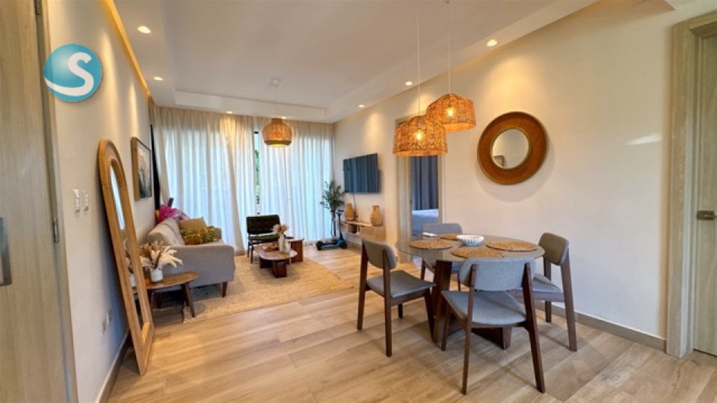 Apartamento amubeblado de primer nivel con 89 metros con 2 habitaciones, 2 baños, cocina con desayunador, sala/comedor, balcón techado, terraza destechada con vista al Crystal Lagoon y jacuzzi. Incluye linea blanca. Vivir en "The Beach at City Place" en Punta Cana ofrece múltiples beneficios Ubicación Privilegiada: A pocos minutos de la playa, centros comerciales, restaurantes, y entretenimiento. Ambiente Exclusivo: Comunidad cerrada que ofrece privacidad y tranquilidad. Crystal Lagoon: Contamos con el Crystal Lagoon más grande del caribe con 30,000 m2. Inversión Rentable: Alta demanda turística y potencial de alquiler a corto o largo plazo El proyecto, actualmente en construcción, contará con una piscina infinity, 6 piscinas lineales, un condo-hotel con lobby, gimnasio, salones, mini market, área deportiva y un restaurante, ofreciendo una experiencia de vida completa