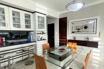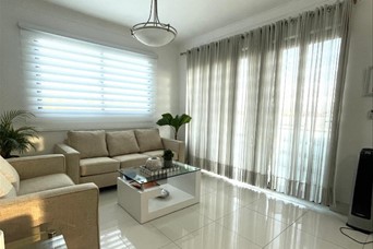 APARTAMENTO EN RENTA – EL DORADO II, SANTIAGO Único dueño • Edificio de solo 4 unidades 3er nivel • 148.52 m² – Vacío Renta mensual: RD$38,000 Distribución del apartamento • Habitación principal con baño y vestidor • Dos habitaciones con un baño común • Sala • Comedor • Cocina con desayunador • Medio baño para visitas • Balcón • Área de lavado • Dos parqueos (uno detrás del otro) Terminaciones y generales • Pisos en porcelanato • Puertas, gabinetes y closets en madera roble • Calentador eléctrico • Sistema de alarma y cámaras Incluye • Dos aires acondicionados • Cortina blackout en la cocina • Cortina tipo zebra en la sala