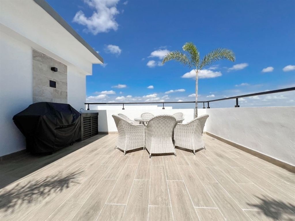 Moderno Apartamento en Venta con Línea Blanca, 2 Habitaciones y Área Social . Consta de 115 m2, ubicado en 4to. nivel Amplio balcon Sala-Comedor Cocina abierta con desayunador Cuarto de servicio 2 Habitaciones (ppal. con su baño y Walk-in closet) Habitacion secundaria con closet + baño Closet de ropa blanca Baño de visitas 2 Parqueos lineales techados intercom Linea Blanca: Nevera Estufa Campana extractora de grasas Lavadora Secadora 3 Aires acondicionados Cuenta con malla proctectora La Torre cuenta con: Lobby, Ascensor, Gimnasio, Area Infantil, Terraza comun, BBQ, Gas comun, Vigilancia 24/7 , Porton electrico,Camaras de seguridad, Planta, Pozo, Cisterna, Mantenimiento RD$9,000 Año de construccion: 2023 Observacion! NO se permite en la Torre la modalidad de Airbnd. Características Electrónica y electrodomésticos Aire acondicionado Línea blanca Exterior Balcón Cisterna Estacionamiento lineal Estacionamiento techado Parrilla Terraza común General Ascensor Cuarto de servicio Gas común Planta eléctrica Portón eléctrico Seguridad 24 Horas Recreación Área infantil Gimnasio