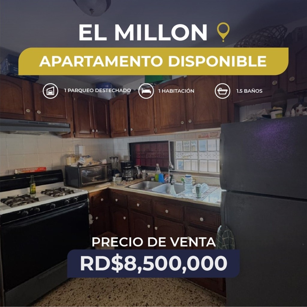 El Millón ?? Piso 2 70.12 metros Balcón 1 habitación 1.5 baños Sala Comedor Area de lavado 1 parqueo destechado (NO ASCENSOR) Precio de venta: RD$8,500,000 Fck