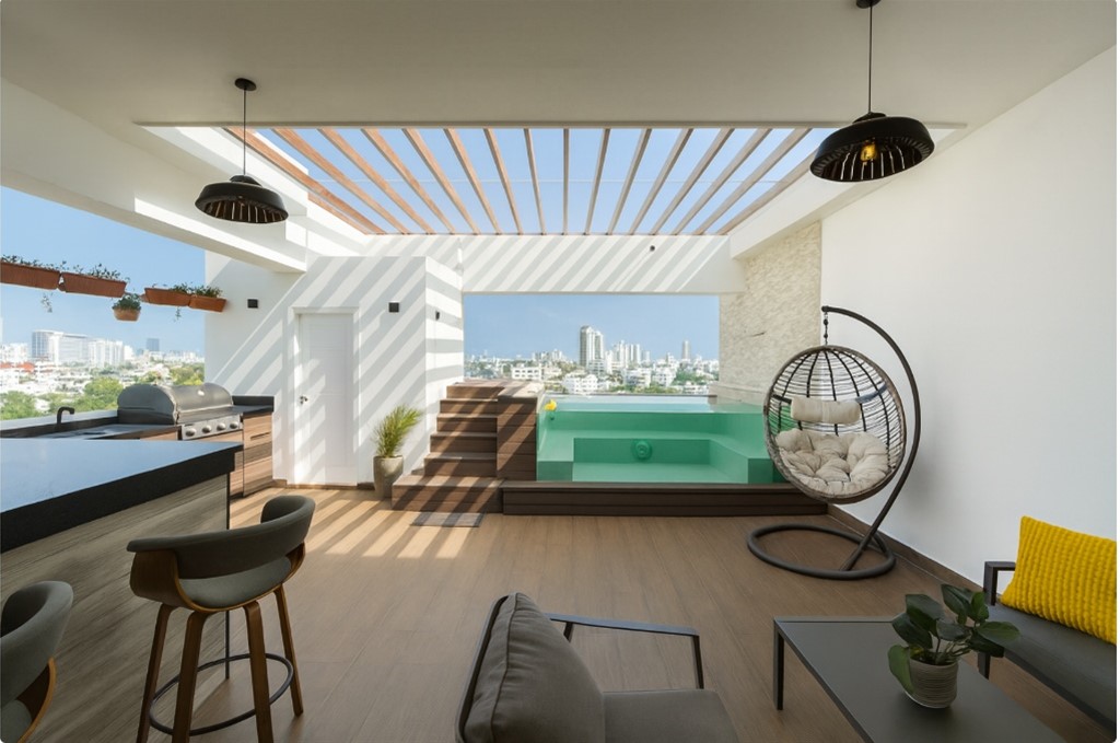 ?? Apartamento Amueblado en Santo Domingo – 3 Habitaciones, Terraza y picuzzi Si buscas un apartamento amueblado en Santo Domingo con terraza y picuzzi esta es tu oportunidad. Características principales del apartamento ( distribuido en 2 niveles): ? 227 m2 netos +67 de Terraza + 2 parqueos techado ? 3 habitaciones, cada una con su baño y closet ( 2 habitaciones en primer nivel y 1 secundaria en el segundo nivel) ? Lo que solía ser la cuarta habitación la convirtieron en Walk in closet y le dejaron su bano dentro. ? Family room ideal para compartir en familia ? Sala y comedor independientes ? Balcón con excelente ventilación e iluminación natural ? Cocina fría y cocina caliente totalmente equipadas ? Habitación de servicio con su propio baño ? Terraza privada con picuzzi, BBQ y baño para disfrutar al aire libre ? Baño de visitas ? 2 parqueos techados paralelos ? Ascensor y elegante lobby de acceso ? Planta eléctrica full para tu comodidad Beneficios de la ubicación Este apartamento amueblado en Santo Domingo está cerca de supermercados, colegios, restaurantes, centros comerciales y vías principales, garantizando comodidad y fácil acceso a todo lo que necesitas. Ideal para: ? Familias que buscan espacio y seguridad ? Expatriados y ejecutivos que quieren mudarse a un lugar exclusivo sin preocuparse por amueblar ?? Contáctanos hoy mismo para más información y coordinar tu visita. Tu mejor opción en bienes raíces en Santo Domingo.