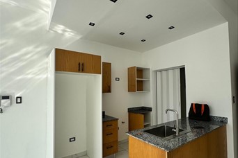 Apartamento en alquiler en el centro de El Millón. Ubicado en un área residencial céntrica, ofrece facilidad de acceso a servicios y comercios cercanos, ideal para vivir con comodidad en familia o de forma independiente. La unidad cuenta con 1 habitación, 1 baño completo y 1 medio baño, con 1 parqueo techado; acabados en cerámica y superficies mixtas. Se encuentra a pasos de referencias como Pinturas Tropical, en una zona bien conectada de Distrito Nacional. Características y acabados Cerámica de alta durabilidad Amenidades y distribución 1 habitación 1 baño completo 1 medio baño 1 parqueo techado Detalles del inmueble Área construida 65.6 m² Concreto y cristal en estructuras