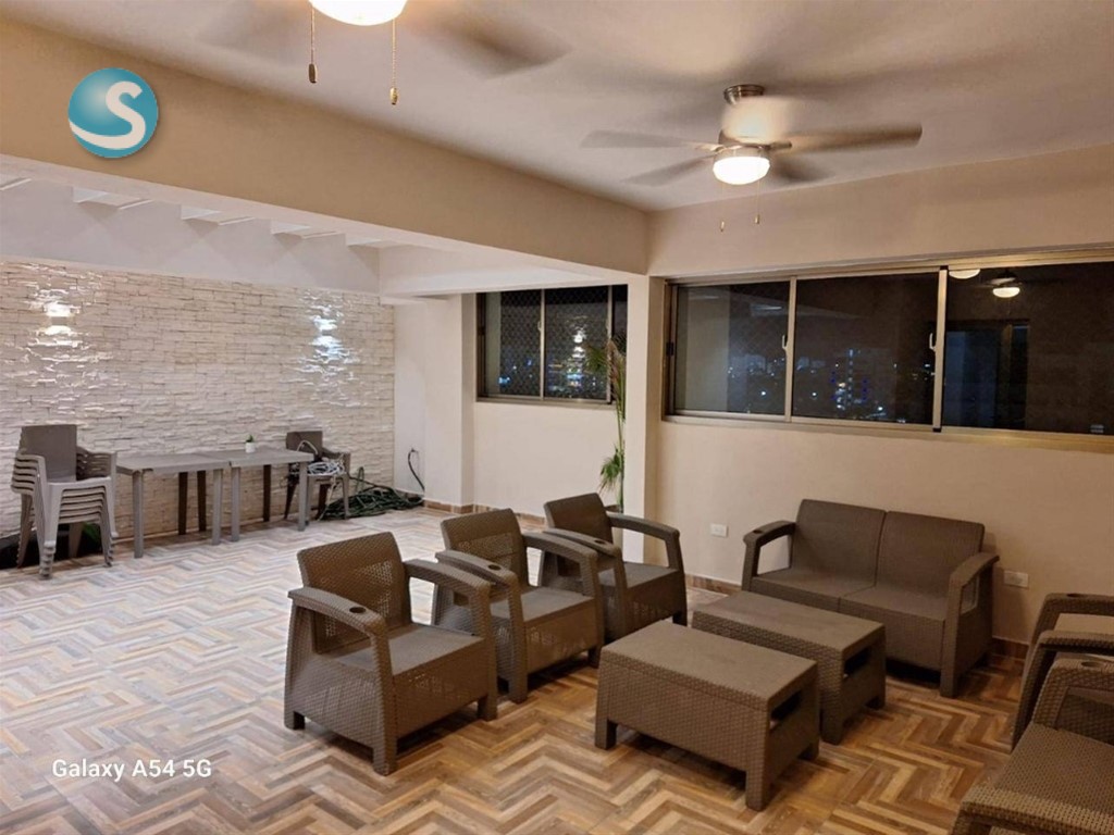 Este apartamento combina comodidad, elegancia y funcionalidad en un espacio de 125.70 m², ideal para familias modernas o profesionales que buscan calidad de vida. Características principales: • 3 habitaciones (1 convertida en estudio), cada una con su baño privado • Sala y comedor amplios e iluminados • Balcón • Habitación principal con walk-in closet • Cocina funcional y moderna • Área de lavado • Habitación de servicio con su baño • 2 parqueos paralelos • Locker amplio • Ubicado en el 6.º piso Amenidades del edificio: • Lobby elegante y climatizado • Ascensor moderno • Gimnasio equipado • Piscina • Área social para eventos • Zona infantil • Seguridad 24/7 y portero Precio de venta: US$310,000