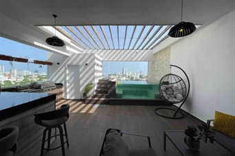 Lujoso Penthouse Amueblado en alquiler – El Millón, Santo Domingo, Piso 8 Ubicado en una de las mejores zonas de la ciudad, este PH lo tiene TODO: • 4 habitaciones (cada una con su baño y clóset, una convertida en walking closet completo) • Family room • Sala • Comedor • Cocina fría y caliente totalmente equipadas • Balcón con excelente vista • Habitación de servicio • Terraza privada con jacuzzi, BBQ, baño y sistema de sonido profesional • 2 parqueos paralelos • Ascensor, lobby, área social y planta full • Sistema de cámaras en todo el apartamento US$3,900 Amueblado con mantenimiento incluido #2652