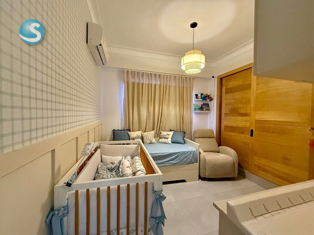 El Millon. Bonito y práctico apto. en Torre moderna de reciente construcción, excelente ubicación ———————————————————————————————— Características 119 Mts2 totales ( 97Mts 2 netos de apto) Piso 5 2 habitaciones con su baño. (Principal con walking closet) 2 baños completos Baño de visitas Balcón Cuarto de servicio con su baño. 2 parqueos lineales y techados La torre cuenta con: - GYM - Area social (tipo sala con aire y tv - Area de niños - Terraza con BBQ - Lobby climatizado - Planta Full - Pozo - Construcción 2024 - Mantenimiento RD12,500.00 Precio de venta: $220,000.00 negociable Contáctame,