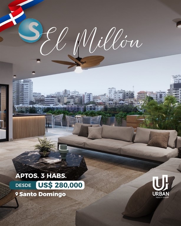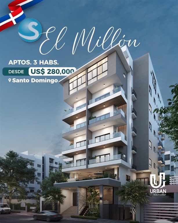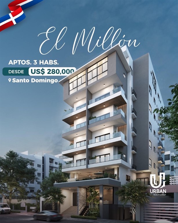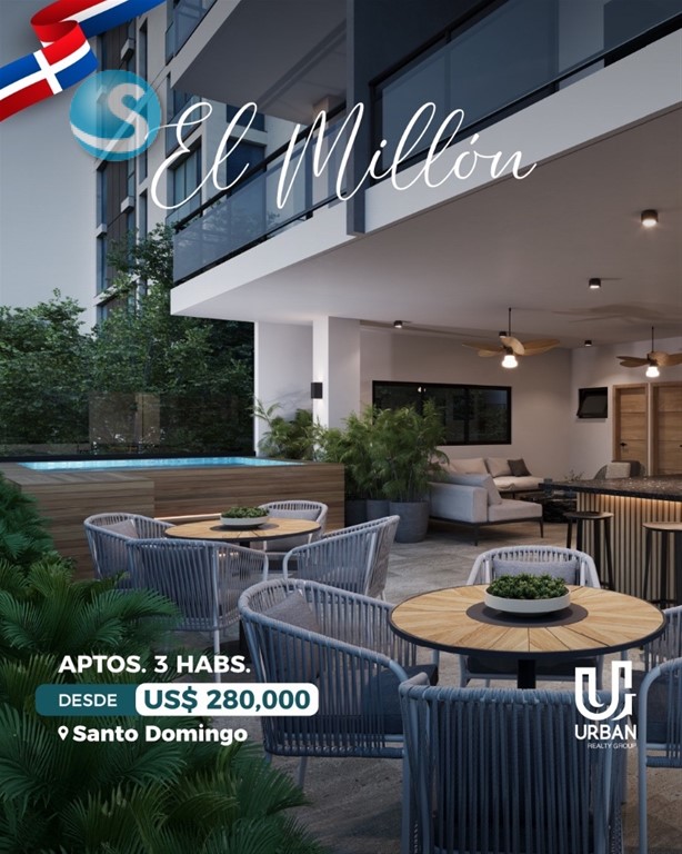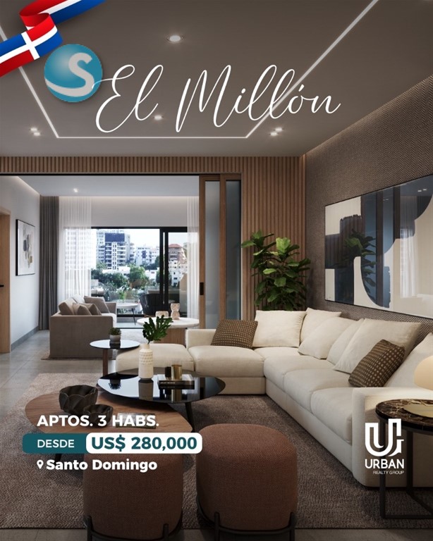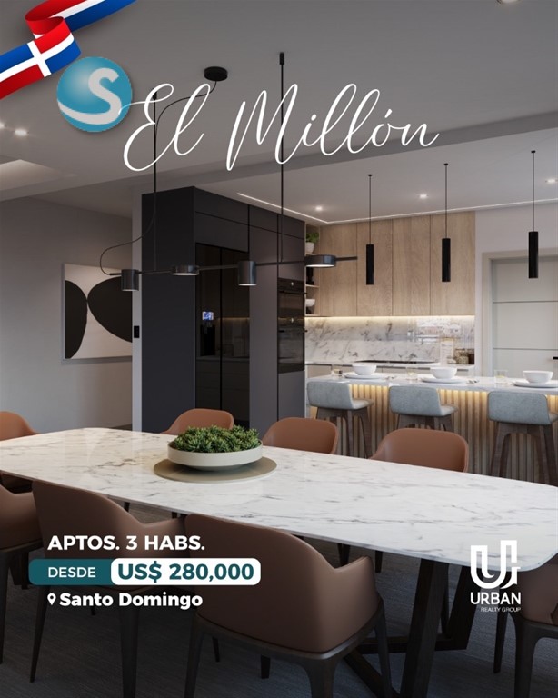 A tan solo metros de las Avenidas principales, 27 de Febrero y anules de Cáceres. ——————————————————————— CARACTERÍSTICAS: APARTAMENTOS 3 Habitaciones PRECIOS DESDE US$ 280,000 CARACTERÍSTICAS 3 habitaciones con baño y vestidor Amplia sala y comedor Cocina espaciosa Balcón Área de lavado + habitación de servicio 2 y 3 parqueos AMENIDADES Lobby elegante, climatizado y amueblado Ascensor Gimnasio Jacuzzi Área social con BBQ Planta eléctrica full Seguridad y acceso controlado Cámaras de vigilancia ——————————————————————— Forma de pago: Reserva: US$ 5,000 10% FIRMA CONTRATO 30% DURANTE LA CONSTRUCCIÓN 60% CONTRA ENTREGA ENTREGA JULIO 2028 Llámanos: María Almonte Cel. 809-703-1742 #somosurbangroup #elmillon #apartamentos #inversion #turistico #lujo #confort #santodomingo #republicadominicana #RD #d