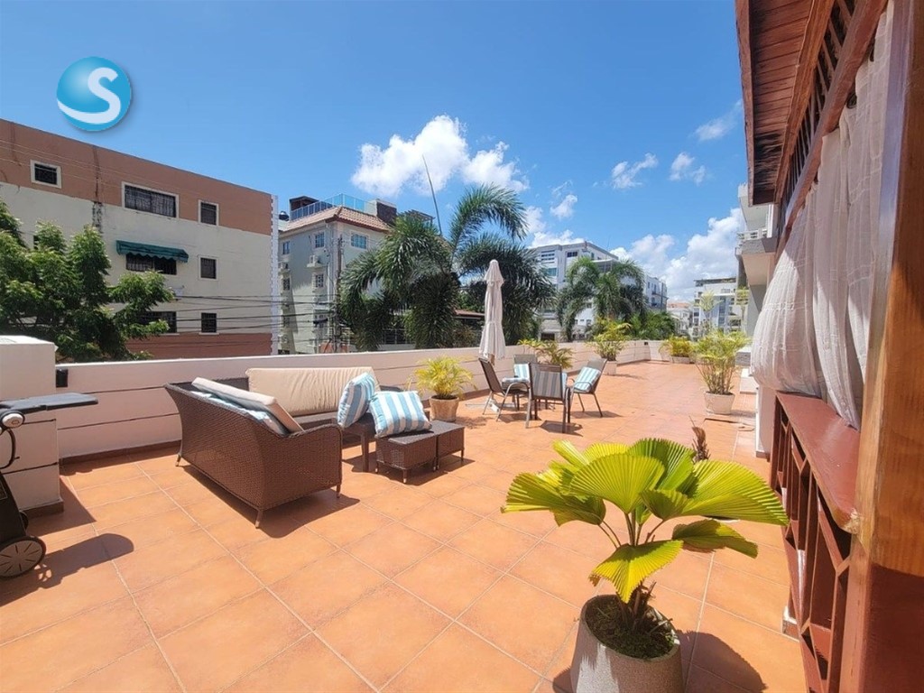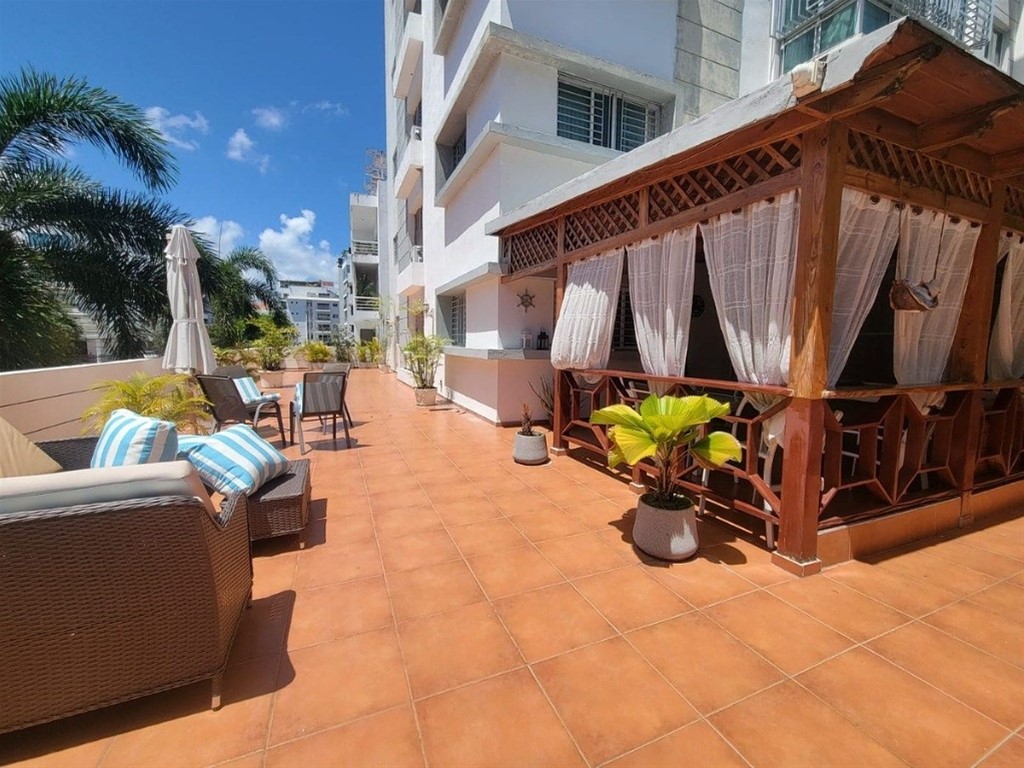Descubre el equilibrio perfecto entre comodidad, espacio y ubicación en este elegante apartamento totalmente amueblado, ideal para quienes buscan vivir con estilo. 172.58 m² netos + impresionante terraza de 180.21 m² con jacuzzi Características destacadas: Terraza techada con jacuzzi y espectacular terraza amplia perfecta para disfrutar al aire libre 3 cómodas habitaciones 3.5 modernos baños Amplia sala y comedor Funcional cocina Estudio ideal para home office Cuarto de servicio con baño Seguridad y confort: Inversor en el apartamento Sistema de alarma conectado a Safe One Circuito cerrado de cámaras Conserje Ascensor Planta eléctrica en áreas comunes (ojo: no para los apartamentos) Parqueos: 3 espacios (2 lineales + 1 independiente) Precio de alquiler: US$2,000 (totalmente amueblado) Vive con amplitud, seguridad y en una de las zonas más privilegiadas de la ciudad. ¡Este apartamento lo tiene todo! ID: EB-VT3695 Para más información, visite nuestro portal web: https://www.tropical-livingdr.com/property/exclusivo-apartamento-amueblado-con-amplia-terraza-en-el-millon?agent=oficinat_1&lang=es