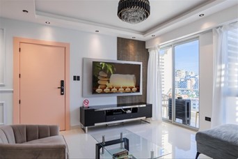Venta Verdi Paraiso Se vende apartamento moderno en Ensanche Paraíso-Distrito Nacional ?? a solo 4 minutos caminando de Ágora Mall, a 10 minutos caminando de Blue Mall. A tan solo una cuadra de la John F Kenedy, W Chulchi, Abraham Lincoln, Charlé Sumer ?Cerradura Inteligente ?Camara seguridad ?Dos Apartamentos por piso ?Piso 10 alto ?128.77 metros incluyendo los 2 parqueos ?2 habitaciones (Principal con walking closet y baño completo) ?2da habitación con baño ?Baño de visita ?Habitación de servicio y baño completo ?Área de lavado Lavadora y secadora ?Sala ?Cocina ?Comedor ?Balcón con hermosa vista a la ciudad ?Año de construcción 2019 Amenidades del edificio??? ?Amplia Área social ? Sala de conferencias ? Sala de eventos ?2 piscinas para niños y adultos ?BBQ equipado ?área amueblada out Doors ?Gimnasio ?Lobby climatizado ?Seguridad 24/7 ?dos portones a control remoto ?2 parqueos techados paralelos ?4 ascensores ? 10,300 Mantenimiento Precio sin amueblar US$265 ?? Torre y apartamento acabada de recibir remodelaciónes