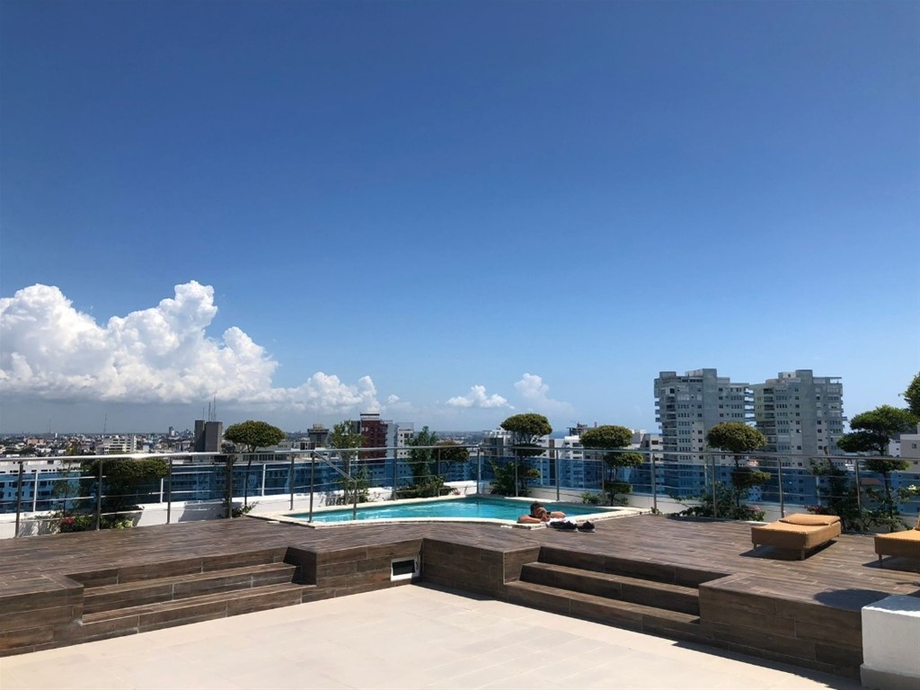 Hermoso apto amueblado en alquiler y venta 2 habitaciones 2.5 banos 2 parqueos techados 146mt Sala comedor Área lavado habitación servicio Área social Piscina gimnasio BBQ Ascensor planta full gas común Locker Vigilante Portón eléctrico Citas Ana Livia 809 440 0223 Hacemos Datacredito-Equifax