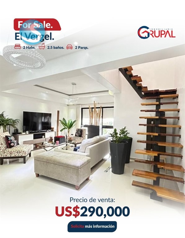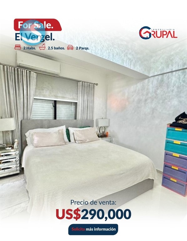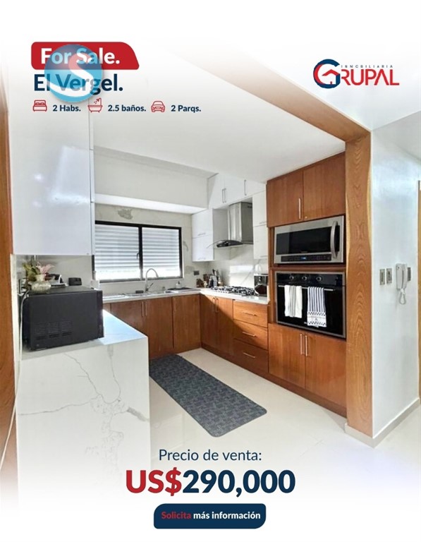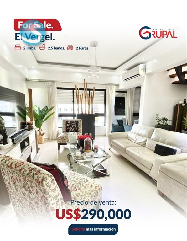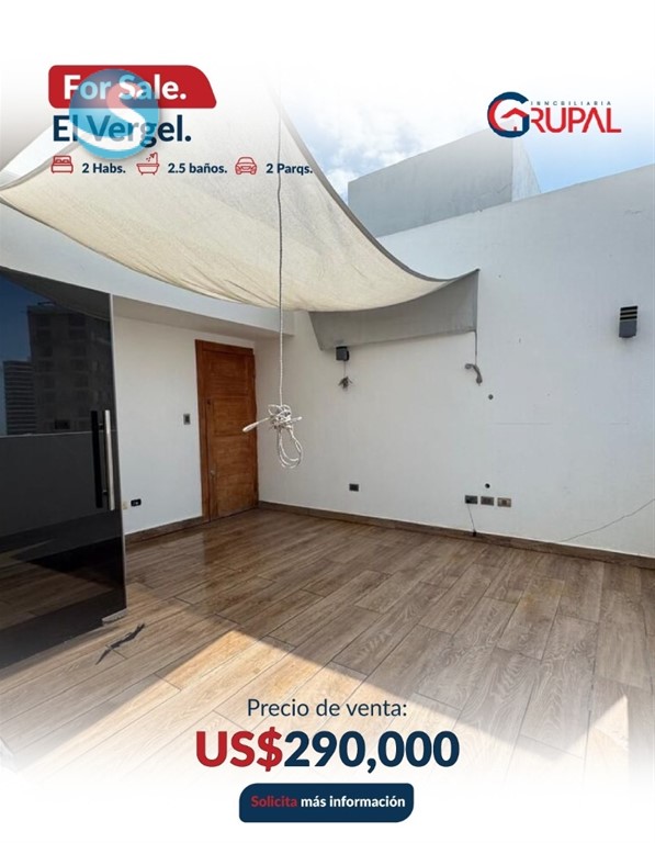 Venta en exclusivo sector de El Vergel?? ?????????????????????????????? ?????? ?????????????????????? ?2 habitaciones ?2.5 baños ?Sala ?Comedor ?Cocina ?Closet de ropa blanca ?Terraza ?Área de lavado ?Habitación de servicio ?2 parqueos ?????????????????????????????? ???? ???? ?????????? ??Portón eléctrico ??Ascensor ??Luz 24 hrs ??Cámaras de seguridad ??Planta full ??Lobby climatizado ???????????? ???? ?????????? US$290,000????