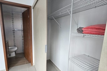 Alquilo comodo apartamento de 1 hab mas estudio con linea blanca!! a estrenar!!!! 1 habitación con su baño y closet estudio pequeño balcon sala/comedor/cocina medio baño 1 parqueo posee aires, nevera , estufa, lavadora secadora. gym salon multiuso