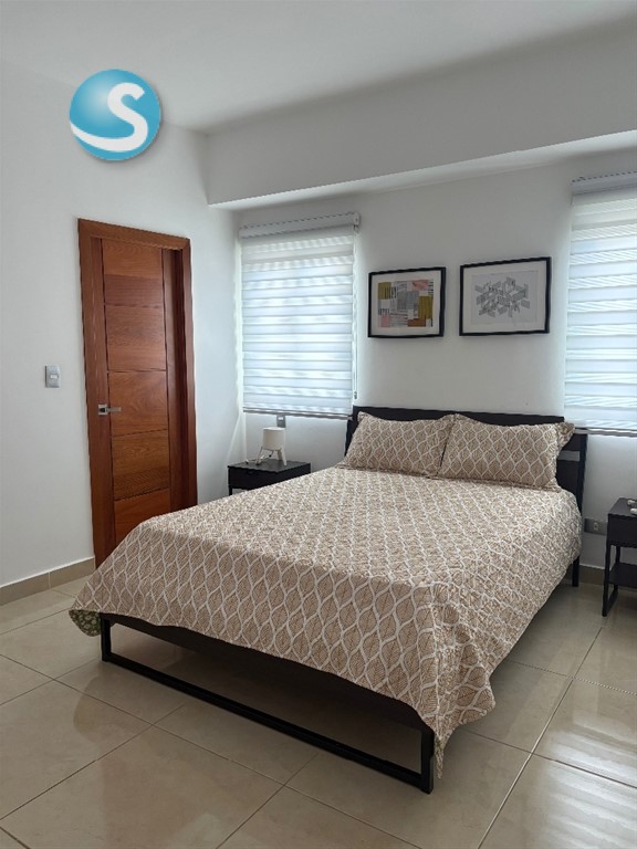 Apartamento amueblado en alquiler – El Vergel • 64.54 m² de apartamento • 12 m² de parqueo • 1 habitación amplia con walking clóset • 1 baño completo • 1/2 baño para visitas • Cocina amplia y funcional • Balcón • Área de lavado independiente • Totalmente amueblado • 1 parqueo techado • Mascotas permitidas Amenidades del residencial: • Área infantil • Salón de eventos en el primer nivel • Terraza social en el piso 11 con bar y BBQ • Salón de eventos adicional en el piso 11 • Gimnasio equipado • Planta eléctrica • Gas con medidor • Dos ascensores Ubicación estratégica en El Vergel, próximo al Centro Olímpico, Universidad APEC y UNIBE. Ideal para profesionales o estudiantes que buscan comodidad y excelente ubicación.