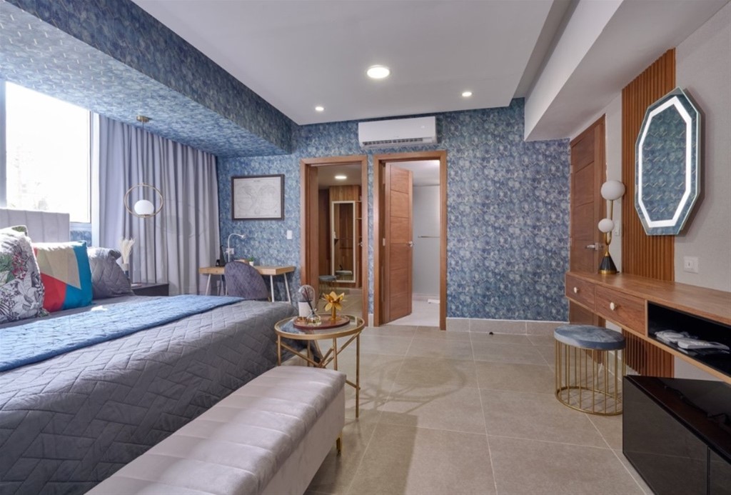 Apartamento nuevo con Terraza en Naco?? Apartamento amplio de 1 habitación con 100M2 + Terraza con Jacuzzi 1 habitación amplia con walk in Closet revestido en cedro y baño Medio baño de visitas Sala-Comedor Cocina Abierta con desayunador Area de lavado Terraza con Jacuzzi 2 Parqueos lineales techados Torre Con 2 Ascensores, Piscina, Bar, Terraza, Area de juegos, Gym. U$220000