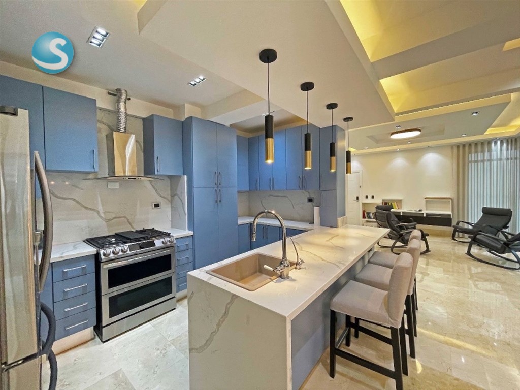 Hermoso apartamento en el centro de Naco 3 Hab c/u con su baño 3.5 baños Sala Comedor Cocina Family room Área de lavado Hab de servicio Balcón Pisos en mármol Mallas de seguridad Screanner en el balcón La venta incluye finas cortinas en el apartamento Aires acondicionados nuevos Estufa Sistema de purificación de agua 2 Parqueos Amenidades Lobby climatizado Gym Salón multiuso Terraza techada