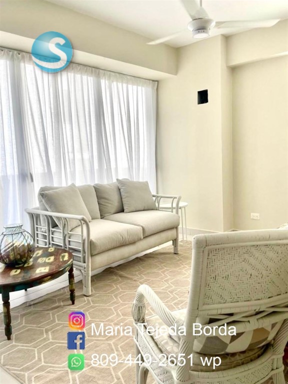 Excelente Apartamento de alquiler en Naco - US$1,300 / mes (amueblado) - 8vo Nivel - 2 Habitaciones - 2 Banos - Sala comedor - Balcon - 2 Parqueos - Cuarto de servicio y area de lavado - Piscina