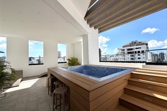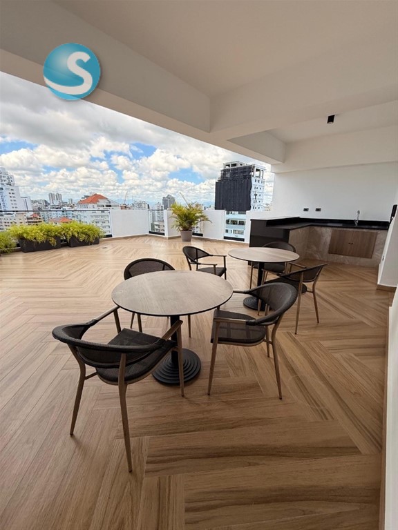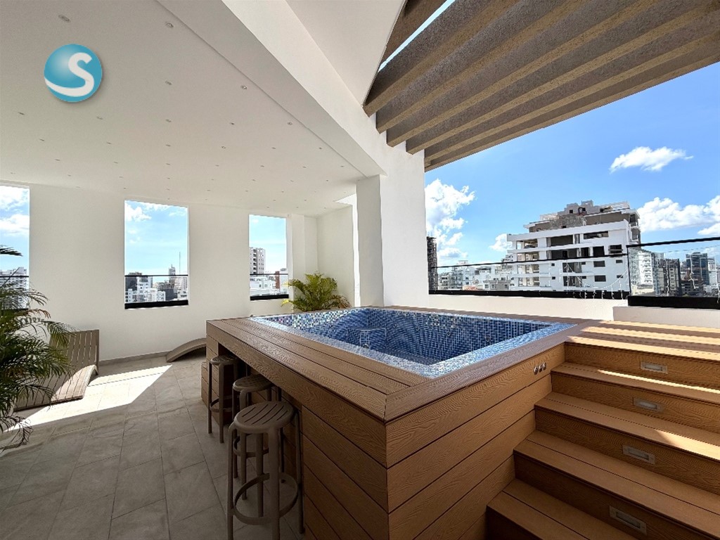 NACO Moderno Apartamento Nuevo en un piso alto con vista despejada y atractivas áreas sociales en el rooftop. PRECIO US$235,000 - 87 metros neto - 2 habitaciones 2 baños - Balcón con vista despejada - Sala Comedor - Cocina - Área de lavado - 1 parqueo techado Incluye: Aires Acondicionados (3) - Televisores (3) - Estufa empotrada y Extractor, Mallas de protección Amenidades: - Picuzzi - Gimnasio - Terraza - Salón Multiuso - Área infantil - Lobby Amueblado - Ascensor - Planta Eléctrica Full Año de construcción 2025 Mantenimiento $10,000 pesos