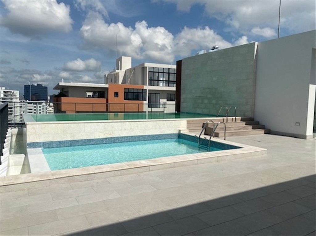 Excelente apto en alquiler, con Línea Blanca, ubicado en pleno centro del polígono central, el ensanche Naco. Tiene 92 mts de constucción, consta de sala, comedor, cocina amplia y moderna, 2 dormitorios, 2 baños, servicio con baño, área de lavado y 2 parqueos. La torre cuanta con lobby climatizado, 2 ascensores, gas común, planta full y Área social con piscina adultos y de niños, área infantil, Gym, Salón de uso múltiple. Precio: US$1,450 Incluye Línea Blanca.