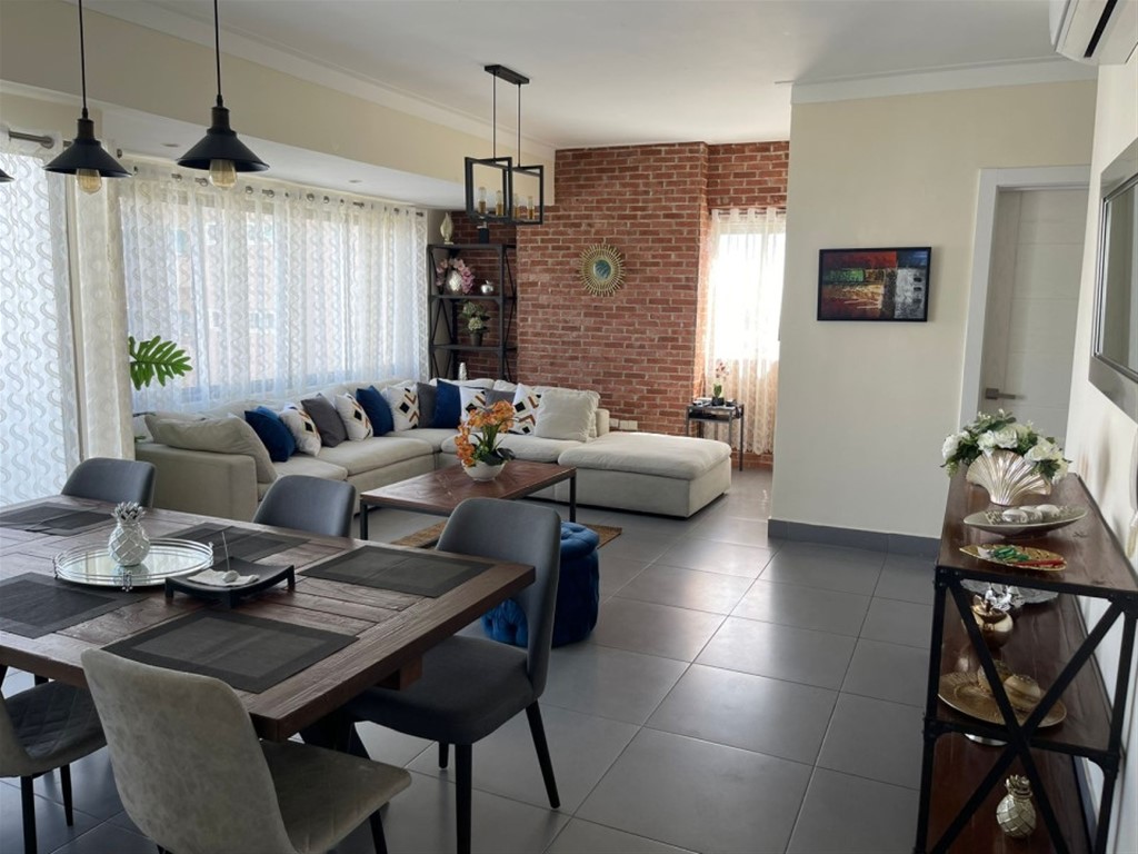 Este moderno apartamento en el prestigioso sector Ensanche Naco del Distrito Nacional ofrece 125 metros cuadrados de comodidad y estilo. Con 2 habitaciones y 2 baños, es ideal para familias o parejas. Disfruta de un balcón privado, un espacioso recibidor, sala y comedor integrados, y un área de estar acogedora. La cocina está equipada con todo lo necesario. Además, cuenta con ascensor, área de lavado, cuarto de servicio, gimnasio, portón eléctrico, y áreas sociales. Relájate en la piscina y disfruta de la seguridad y confort que este apartamento ofrece.