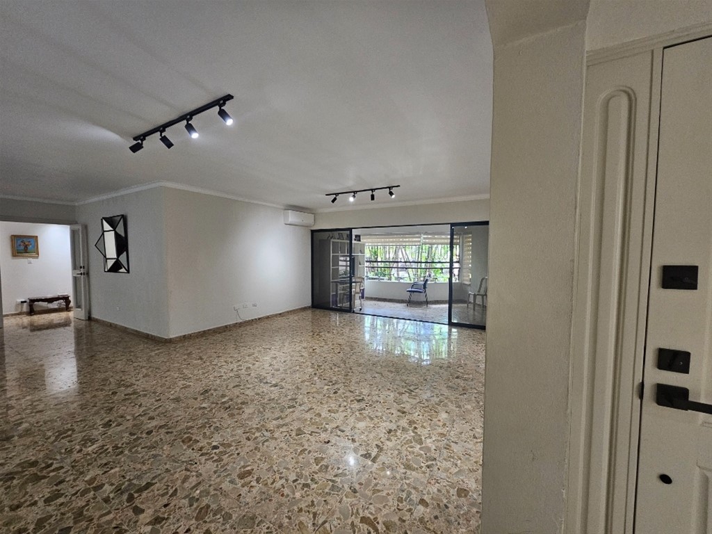 AMPLIO APARTAMENTO REBAJADO DE PRECIO!!! Apartamento ubicado en el primer piso de un edificio en condominio de 4 niveles con dos apartamentos por nivel. Descripcion y terminacion: Cimientos, vigas, columnas y losas de H.A.• Muros de bloques • Pañete liso en paredes y techo• Pisos de granito de mármol• Pisos de cerámica en baños y cocina• Puertas del balcón corredizas de aluminio y vidrio• Puertas de caoba• Ventanas corredizas de aluminio y vidrio• Gabinetes de caoba Modulares de lujo con tope de granito• Aparatos sanitarios de alta calidad.Cornisas de yeso en todas las áreas• Instalación eléctrica empotrada. Línea blanca reciente intalada: 5 aires acondicionados, nevera de dos puertas, estufa, lavadora y secadora ( SE VENDE APARTE), Baños y cocinas recientemente remodalados.Las áreas de los diferentes ambientes, así como la ventilación e iluminación de estos pueden de buenas y adecuadas para este tipo de edificación. La arquitectura en baños es moderna con acentos eclécticos. DEPENDENCIAS• Medio baño• Sala• Balcón • Estar• Comedor• Cocina• Área de lavado• Dormitorio de servicio con baño• Dormitorio principal con baño y walk in closet• Dos dormitorios secundarios, cada uno con baño walk in closet• (2) dos parqueos. Amblio Balcón, seguridad, gas comun con medidor, planta eléctrica full, línea blanca nueva, cuarto de servicio, 3 habitaciones con walking closet y baños incluidos, closet ropa dominicanos.