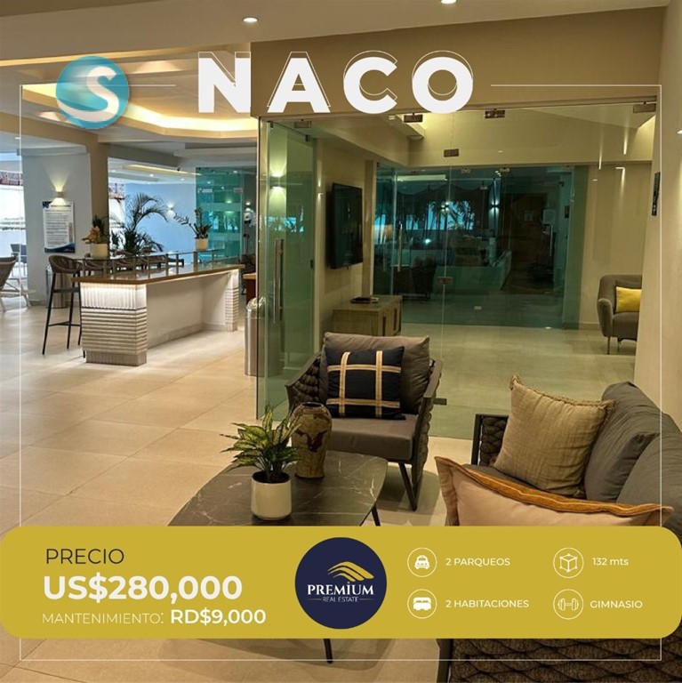 Naco 132 mts Nivel 9 2 Habitaciones 2 Baños Sala Comedor Cocina Balcón Área de lavado 2 Parqueos Techados Paralelos 4 Ascensores Lobby Climatizado Amueblado Área social: Piscina de adultos Piscina de niños Gym Área de niños Área de eventos Área de BBQ Área Lounge Precio US$280,000 Mantenimiento RD$9,000 th