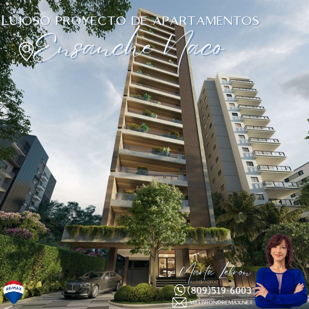 Apartamento en venta en el Ensanche Naco de 310 mts2, cuenta con 3 habitaciones, 3 baños, estudio, cocina moderna, balcón, 4 parqueos con locker, area de lavado y cuarto de servicio con baño, ideal para familias y parejas. Además, ofrece amenidades como: Drive way, lobby climatizado y amueblado, cancha de padel, área de juegos para niños, cisterna, escalera, 3 ascensores, terraza, parqueo techado. La propiedad incluye planta eléctrica común, áreas sociales, piscina con Deck, BBQ , sala de yoga, salón de belleza, sauna, área de masaje, jacuzzi, gimnasio, salón multiusos, escaleras de emergencia y portón eléctrico, garantizando seguridad y confort. Con 3 espacios de parqueo, es una opción perfecta para quienes buscan comodidad y estilo en una ubicación privilegiada. Para entrega en Diciembre de 2027
